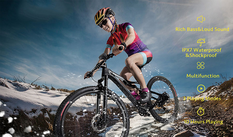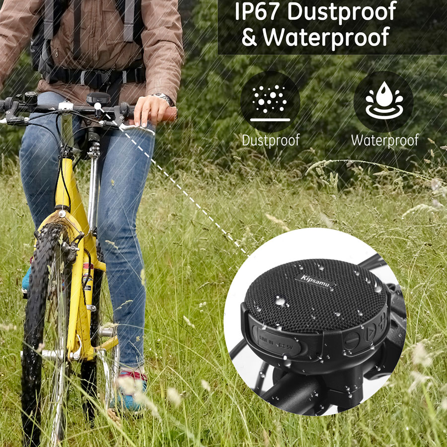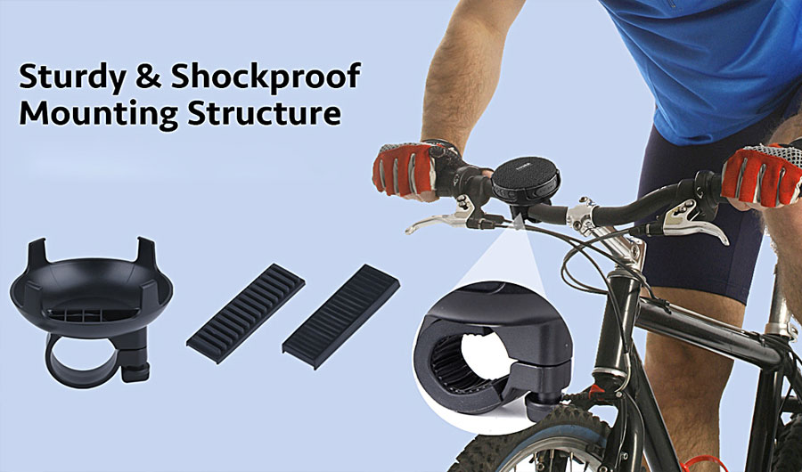 【IPX7 impermeabile e anti-shake】 Questo altoparlante BT per bici è veramente classificato IPX7 con un'eccellente protezione dall'acqua durante la guida. La staffa in nylon rinforzato e le strisce in silicone spesse 2 pezzi consentono agli appassionati di sport di godersi il viaggio.
